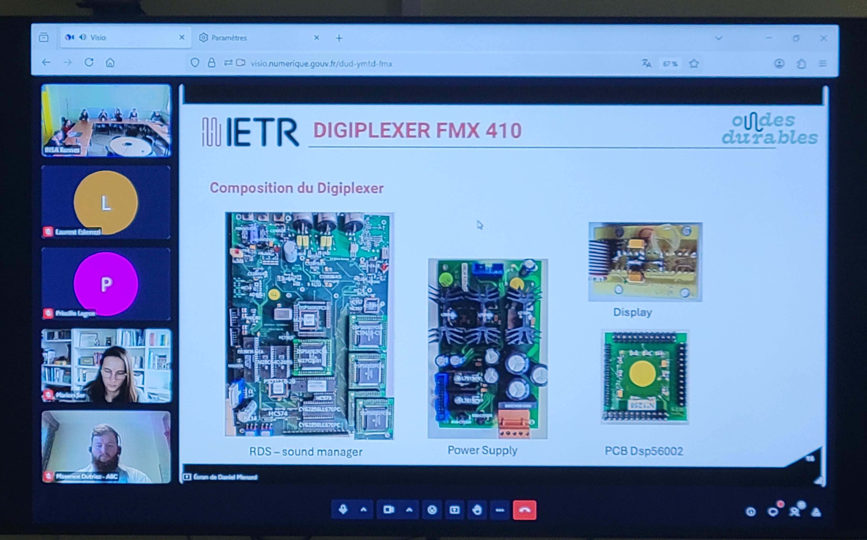 L’IETR a présenté les analyse ACV en cours d’un système de traitement son, d’un émetteur et d’un récepteur FM/DAB+. Ces équipements ont été entièrement démontés afin de comprendre les impacts de chacun des éléments qui les composent. Dans la continuité de l’étude d’Hubblo, l’IETR doit mener des recherches complémentaires sur des émetteurs et d’autres équipements.